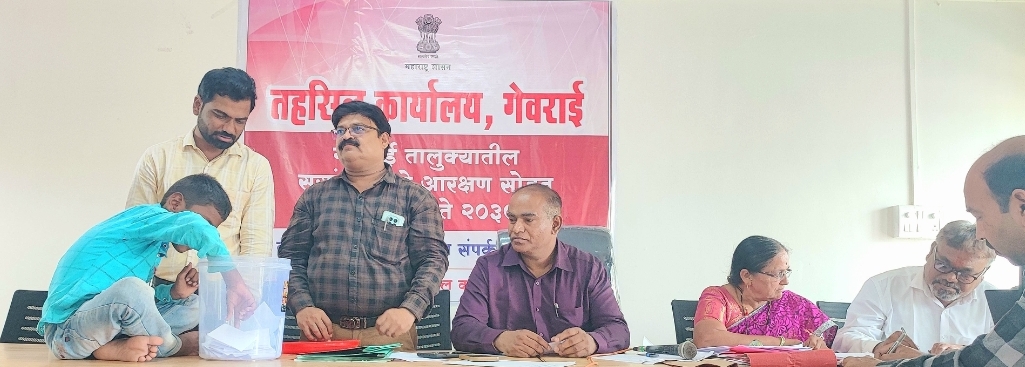 गेवराई तहसील कार्यालयातील ग्रामपंचायत निवडणुक विभागात तहसील संदीप खोमणे यांच्या उपस्थितीत 139 ग्रामपंचायतीचे आरक्षण प्रवर्ग निहाय